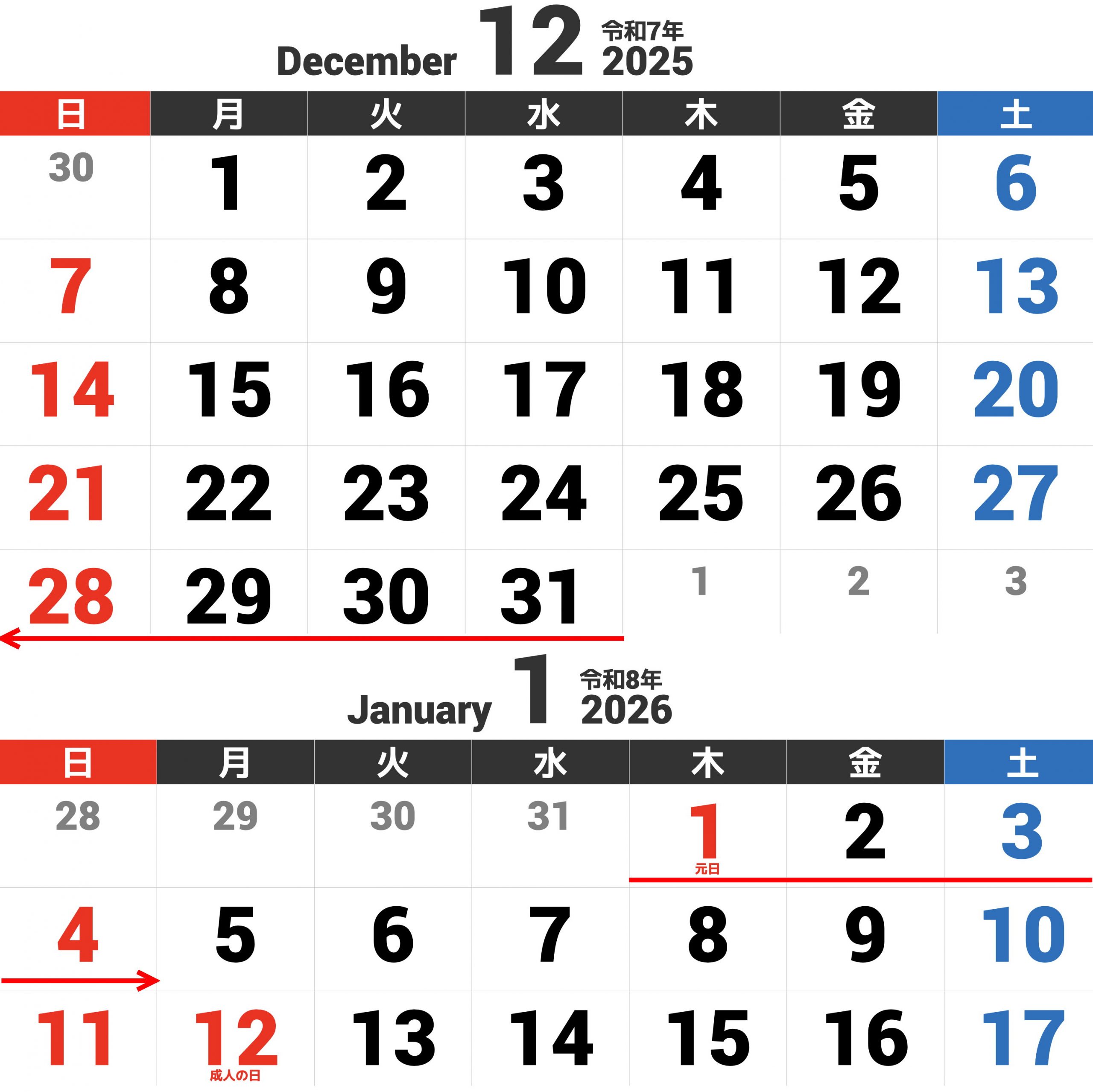 令和7年12月28日(日) より 令和8年1月4日(日)